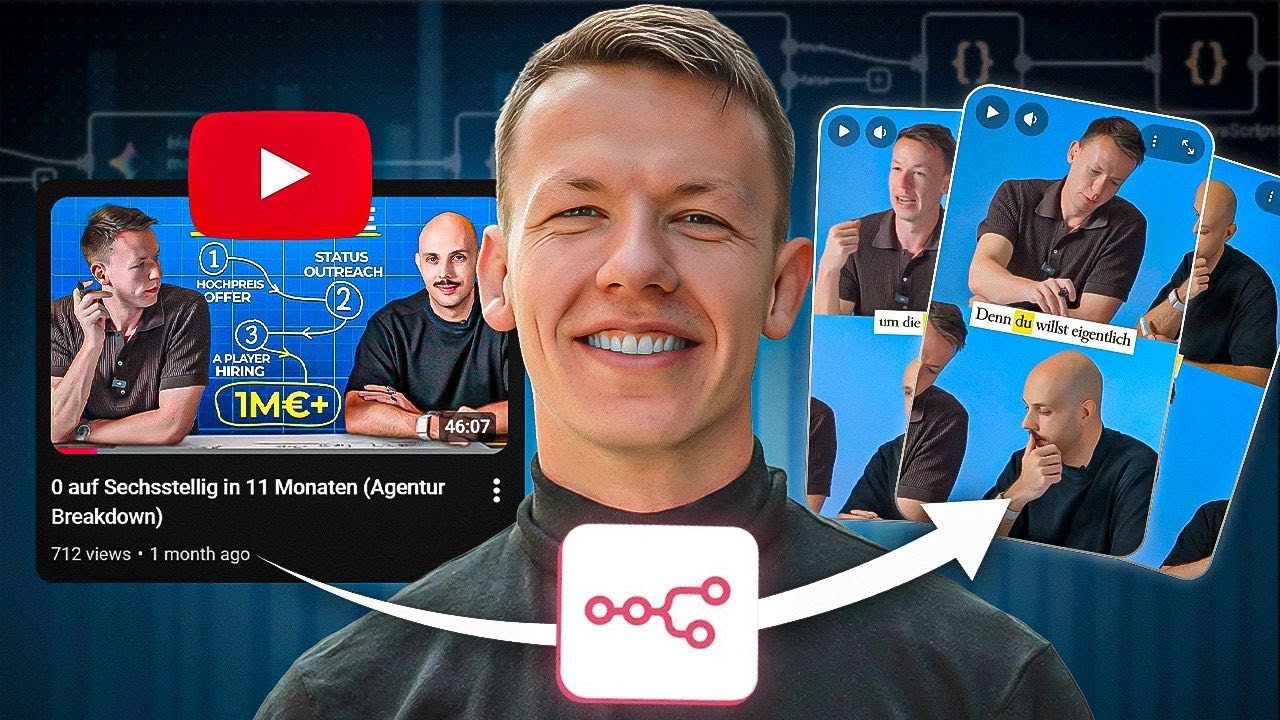 In diesem Video möchte dir konkret zeigen, wie du aus einem YouTube Video Reels machen kannst und das mit N8N. Das Wichtige, was du auch in diesen Kursen immer wieder sehen wirst hier, wir gehen nicht auf allgemeine Dinge ein, wie du einfach warum du allgemein AI verwenden sollst, sondern wir sorgen, was du immer wieder in diesen Kursen sehen wirst, ist, dass wir uns nicht allgemeine Dinge raussuchen, warum du allgemein AI benutzen solltest, sondern wir suchen uns immer konkrete Usases raus, wo wir sagen: "Hey, wir haben ein Problem und aus dem wollen wir mit AI zufälligerweise mit AI, es könnte auch mit was anderem sein, es könnte auch eine ganz normale Automatisierung sein. ein ein Prozess bauen und ich habe ja in einem anderen Video schon erzählt, dass wir an sich den Service anbieten wollen, YouTube Videos quasi zu planen und zu veröffentlichen und so weiter. Das kann man ja auch mit AI machen und das hast du auch schon gelernt. Aber was ist, wenn wir dann quasi aus dem YouTube Video noch Reels machen wollen oder Shorts oder TikToks, wie auch man das nennt, auf welcher Plattform du es veröffentlichen willst, je nachdem, was der Kunde noch nicht hat. So und äh genau das ist das Schöne, dass man das eben machen kann. Und ich habe, wenn du mal mir auf meinen Bildschirm folgst, hier in R8N ein Workflow, der nennt sich von YouTube zu Webflow und wir werden den ein bisschen ummodeln und wir werden einen YouTube zu bzw. Also, wir haben schon YouTube zu Reels auch, sehe ich hier gerade ein YouTube zu Reels Modell komplett neu bauen. So, weil hier ist ja viel irgendwie schon vorbereitet und so. Und ich werde dir genau zeigen, wie das funktioniert. Und wenn das jetzt hier gerade dein erster Berührungspunkt zu N8N ist, dann ein kurzes Intro, was das ist, wie das funktioniert. N8N ist an sich ein Automatisierungstool. Ähm und da ich mache mir hier ein neuen Workflow auf, kannst du verschiedene Dinge machen, ne? Du hast hier gewisse Trigger. Ich sag jetzt einmal hier Trigger manual, um irgendwas zu haben. Und ich könnte hier z.B. einen AI Agent direkt bauen. So, das Schöne ist an dem AI Agent, da kann ich dann verschiedene Sachen anschließen, wie äh ein Chatmodell. Da kann ich z.B. sagen, ich möchte Gemini haben oder Open AI und Chat GBT und whatever und ich kann hier z.B. irgendwelche Tools einbauen, z.B. mal Google Kalender, dass er mir z.B. für irgendwelche Kalenderereignisse erstellen soll oder löschen soll oder receiven soll. Also, da kann ich einfach verschiedenste Dinge tun. So, ähm das ist eine Möglichkeit, also AI Agents zu verwenden. Ähm, die andere Möglichkeit sind ganz normale Automatisierung, ne? Also ich könnte, wenn ich das jetzt ja auch lösche, ähm kann ich einfach ein ganz normale Automatisierung machen. So, da gibt's so, also die ganzen Apps, die du vielleicht auch sonst kennst aus Zier oder oder Make oder so. Ich kann Asana einfach einen, also ein Projektmanagement Tool einfach ein Task erstellen, z.B. sieht alles so ein bisschen komplizierter aus und so. Das ist es nicht. Das werde ich dann ganz genau erklären, wie das funktioniert, aber das ist an sich das und ähm das heiß ein Automatisierungs plus AI Tool, so ein bisschen wie Make und SP hier, aber ähm du hast hier quasi einfach mehr Möglichkeiten, ist ein Node basiertes Tool und an sich basiert das alles auf Code. Also wenn ich jetzt z.B. diesen Workflow, den brauche ich jetzt nicht äh wieder lösche dann und ich habe auch einen anderen Workflow hier z.B. Das ist so ein Workflow, wo ich dann mit Siri arbeite und so. Das ist also ist auch egal, was es genau ist. Wenn ich das nicht mal runterlade, dann habe ich hier aufstraße in Berlin von deinem Standort. Hey Siri stop. So, dann habe ich hier diese Datei, eine Jason Datei. Jason ist nichts anderes als ein strukturiertes Dateiformat, also wo einfach die Sachen sauber aufgelistet sind, dass da eine Maschine, eine AI, whatever, ein Programm damit gut arbeiten kann. Und das ist am Ende einfach eine Jason Datei. So. Und wenn ich jetzt diese Jason Datei in die Zwischenablage kopiere, also hier einfach auf kopieren klicke und das in einem neuen äh neuen Workflow hier aufmache und hier auch das wieder einfach einfüge, also Command V, dann habe ich exakt das, weil es einfach rüber kopiert ist. Ist einfach ein Code, der visuell dargestellt ist. So, das kann ich wieder löschen. Ähm und ich habe ja auch Templates, wo ich dann hier ganz viele viele Templates mir an angucken kann, aber äh darum soll es jetzt gar nicht gehen um irgendwelche Templates und so. Ich will ja aber quasi grundsätzlich zeigen, das ist N8N. Und was wir jetzt erstmal machen ist, also wenn wir das nach wollen es jetzt nachbauen, dass wir aus YouTube Videos Reels machen können. Wie ist das bei uns ganz konkret? Ich gebe dir ein Beispiel. Wir haben ähm letztens dieses ähm YouTube Video hier veröffentlicht bzw. haben sogar zwei veröffentlicht. Das eine muss ich mal löschen. Äh sehe ich hier gerade, aber wir haben hier ähm dieses YouTube Video veröffentlicht und das ist ein YouTube wie also ein Short aus und dem YouTube Video dem hier. So, da hat er quasi aus diesem YouTube Video hat er irgendein Short genommen, nicht irgendein haben wir natürlich vproved und das dann veröffentlicht. So und in dem Fall muss ich jetzt mal ganz kurz das YouTube Video das eine Short löschen. Das brauchen wir nämlich nicht. Ähm aber genau das ist das ist an sich das Konzept. Das heißt, wir wollen aus einem YouTube Video ein Short machen. Und wie machen wir das? Grundsätzlich haben wir einen Trigger und dann werden wir mit einem Tool, das nennt sich Submagic, äh daraus ein YouTube Video machen, bzw. ein Short machen. Submic ist ein Programm, ich zeig das mal ganz kurz, ähm was an sich aus YouTube Videos Shorts macht und das Schöne ist, du hast auch ein API, eine API Möglichkeit. Was heißt, was ist eine API? API ist letztendlich eine Schnittstelle, wo ein Tool mit einem anderen Tool r